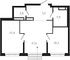 72.9 м2 17 этаж