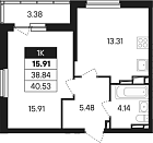 Жилая 15.91 м2