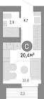 24.6 м2 20 этаж