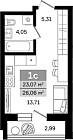 23.07 м2 13 этаж