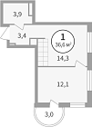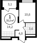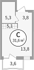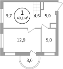 Жилая 28.7 м2
