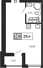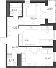 Жилая 43.52 м2
