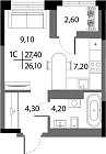 Жилая 32.42 м2