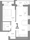 29.7 м2 12 этаж