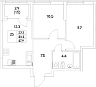 46.4 м2 22 этаж