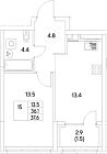 36.1 м2 12 этаж