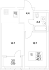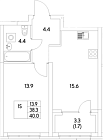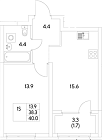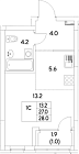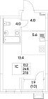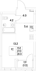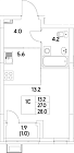 Жилая 26.6 м2