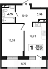 Жилая 13.58 м2
